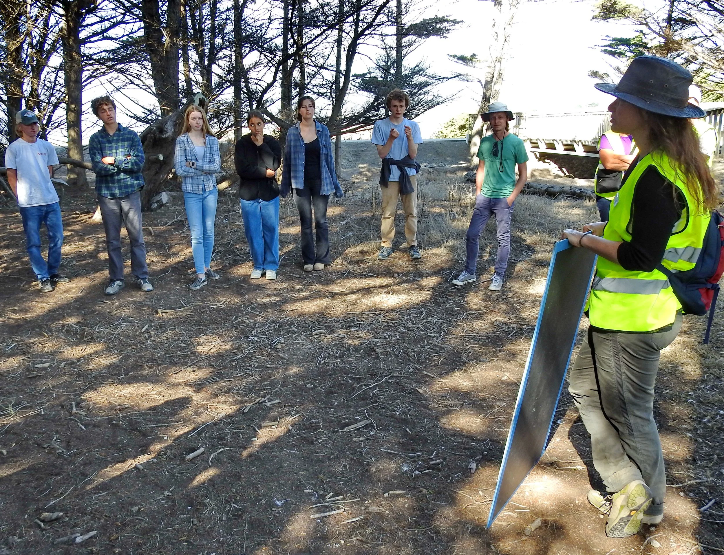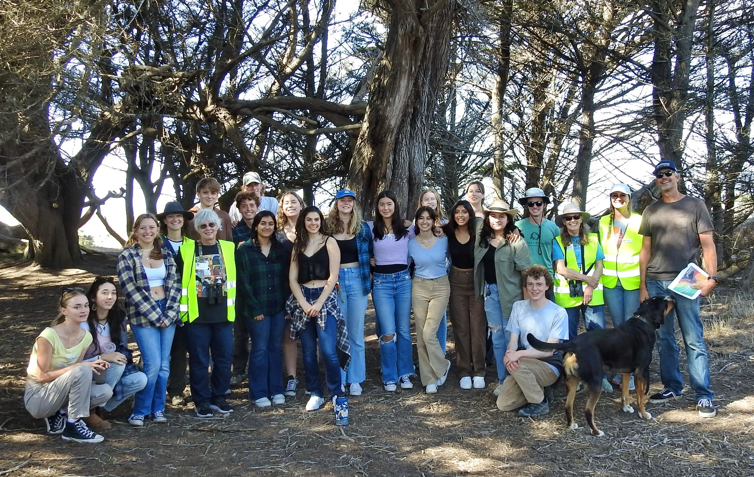On October 18th the Coastside Land Trust hosted Half Moon Bay High School Students from the AP Environmental and Agricultural Programs out at Wavecrest Open Space to prepare these students who will be acting as field guides for the Junior Land Stewards Program. This orientation featured four environmental presenters/ leaders. Barbara Dye spoke about native and invasive plants and their characteristics as well as habitat restoration. Ginny Marshall from Sequoia Audubon Society guided the students in a bird walk where they discovered and learned about the many birds that depend upon the coastal prairie. Sara Polar from the San Mateo County Resource Conservation District (and CLT board member) taught the students about land trusts, trail building, and land management. Ryan Seelbach, geologist and big wave surfer, gave an in depth view of coastal geology, erosion, and wave formation. This was a day of great learning and preparation for all involved.