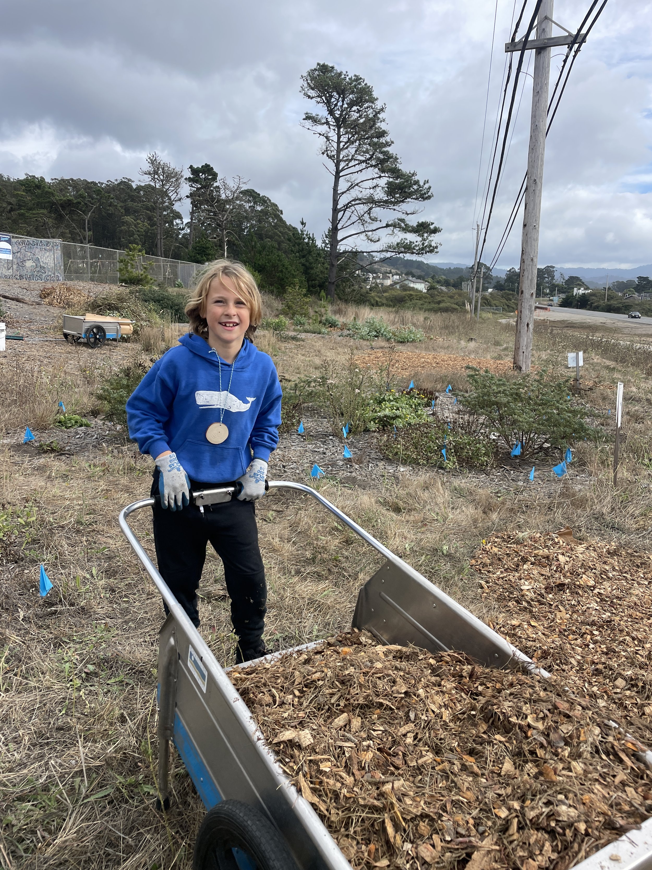 The Junior Land Stewards have begun preparing their future planting plots. Led by their Half Moon Bay high school field guides, they have been removing invasive species, and sheet mulching to prepare their habitat restoration gardens for planting in the spring. They have also taken part in naturalist scavenger hunts where they have been looking for birds of prey, native and invasive plants, signs of the fall season, and places where wildlife might live. Frogs, snakes, hawks and a woodpecker were among the many wild animals observed on these trips. This year the Kings Mountain Elementary school fourth graders have joined the Junior Land Stewards field program, taking active part in these field trips to Wavecrest Open Space - in preparation for their future gardens.