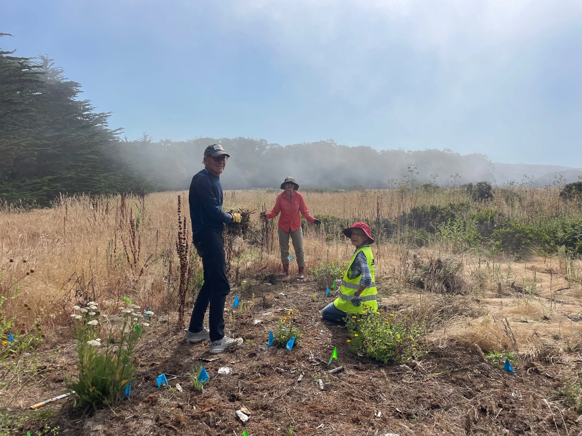 Field work and stewardship in the local coastal prairie. This field work is facilitated by the Half Moon Bay High School Science students.
