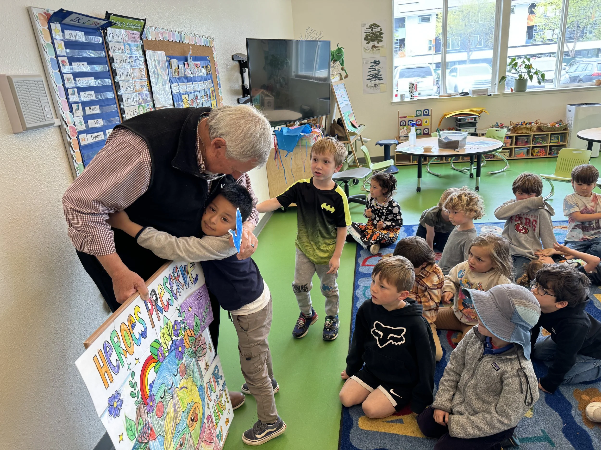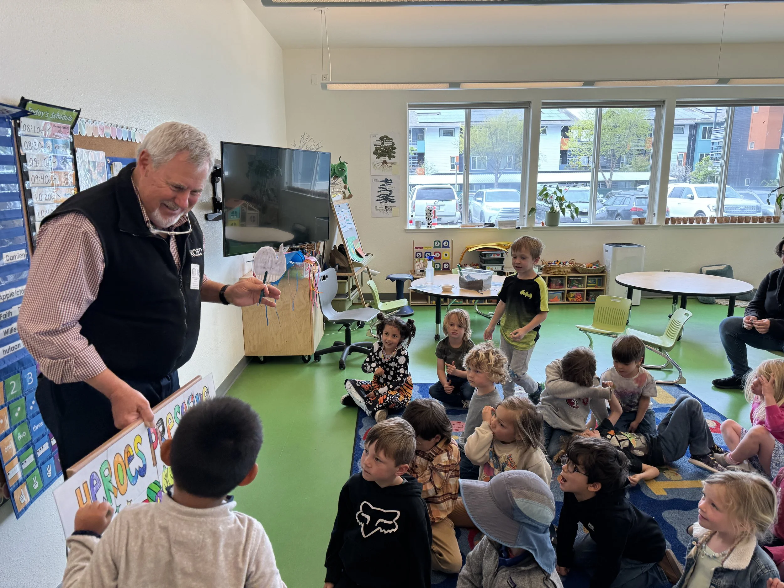 Last Wednesday Bob Rogers, Executive Director here at the Coastside Land Trust, visited the Sea Crest school to share in the celebration of Coast Week. Bob shared a story that reminded these young students to have the courage and passion to care for our earth. Then he joined students as they planted coastal California poppies together. The Junior Kindergarten students created a collective Coast week mural for “Mr. Bob” to thank him for all of the ways he continues to help protect our coast, and shared their commitment to helping protect our coast as earth heroes.