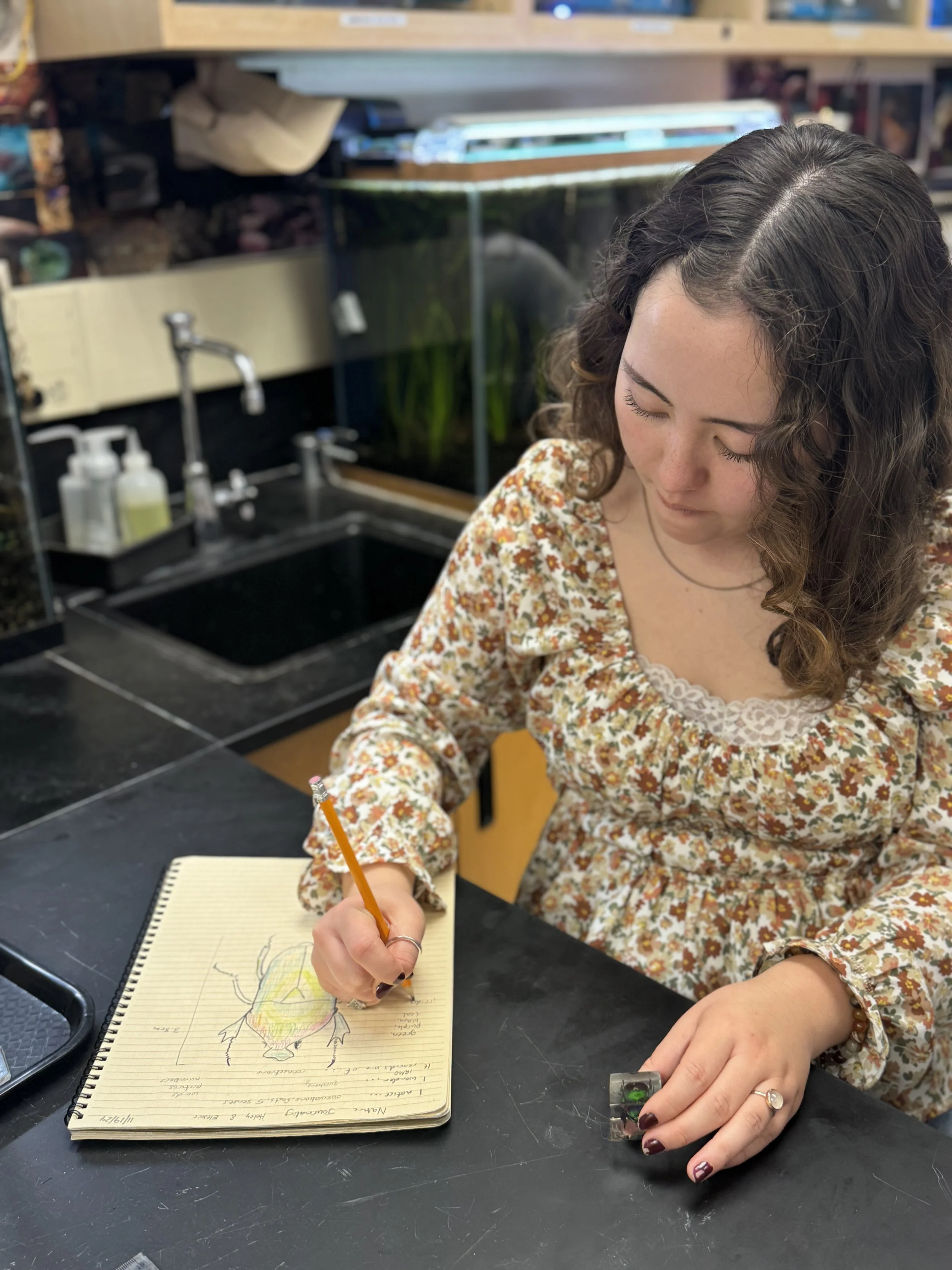 In collaboration with art instructor Janelle Bracamonte, these talented students were challenged to create whimsical mixed-media pieces inspired by three randomly selected components: a subject, an activity, and a place. You’ll be delighted by their beautiful, creative work—using watercolor, gouache, colored pencil, markers, and ink.