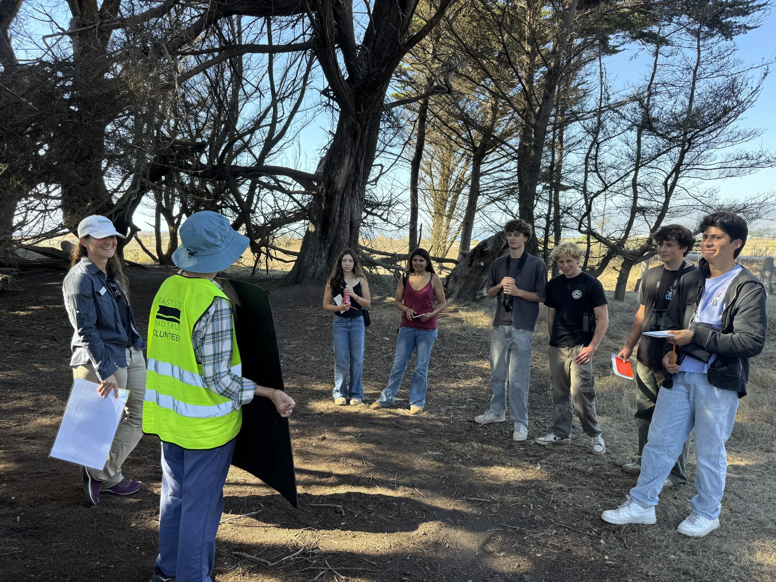 The Junior Land Stewards kicked off their orientation with an action-packed morning at Wavecrest Open Space. Half Moon Bay High School AP Environmental Science and Marine Ecology students explored 50 acres of coastal habitat while soaking up knowledge from local experts. In just under two hours, they rotated through four immersive mini-sessions, each building on the last as students examined different parts of the coastal environment. All of this preparation helps them become field guides for the local 4th-grade students participating in the Junior Land Stewards program.